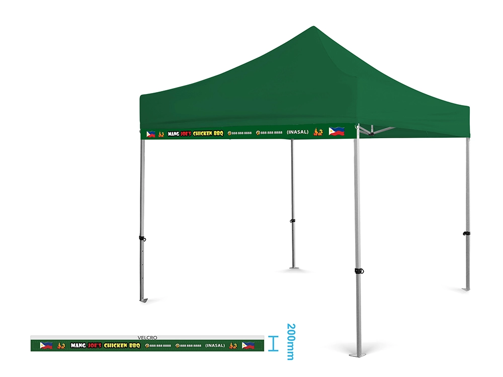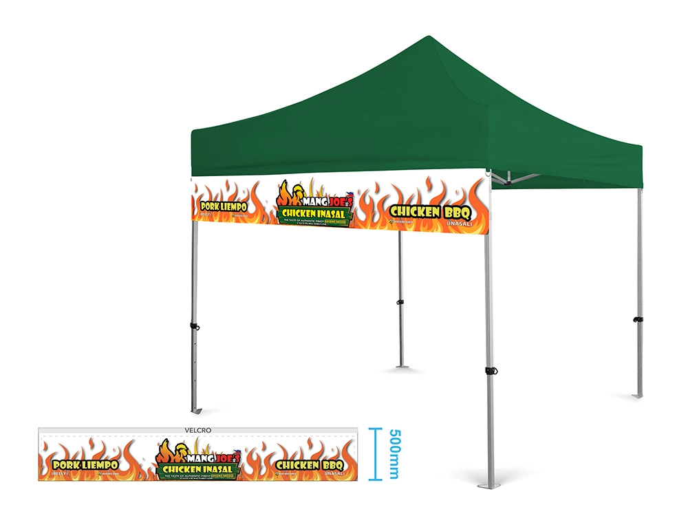Looking for a 360° branding solution? The valance wrap banner is designed with tensioned straps at all four corners, allowing you to hook the banner securely onto the gazebo canopy. Once in place, the ends fasten together neatly to create a seamless wrap-around finish. This banner helps your branding stay in place and look sharp from every angle.